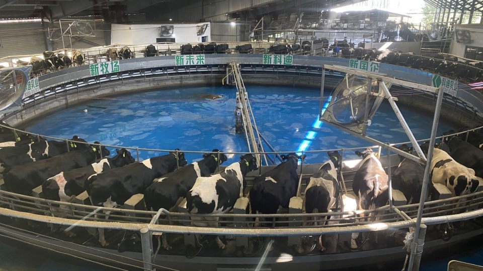 “这个转盘有80个挤奶位,每个位置正好站下一头牛,牛走上挤奶位后,挤奶设备会自动与奶牛对接,自动挤奶就正式开始了!”8月29日,在商丘市虞城县在线体育博彩 智慧牧场,工作人员介绍着挤奶流程。